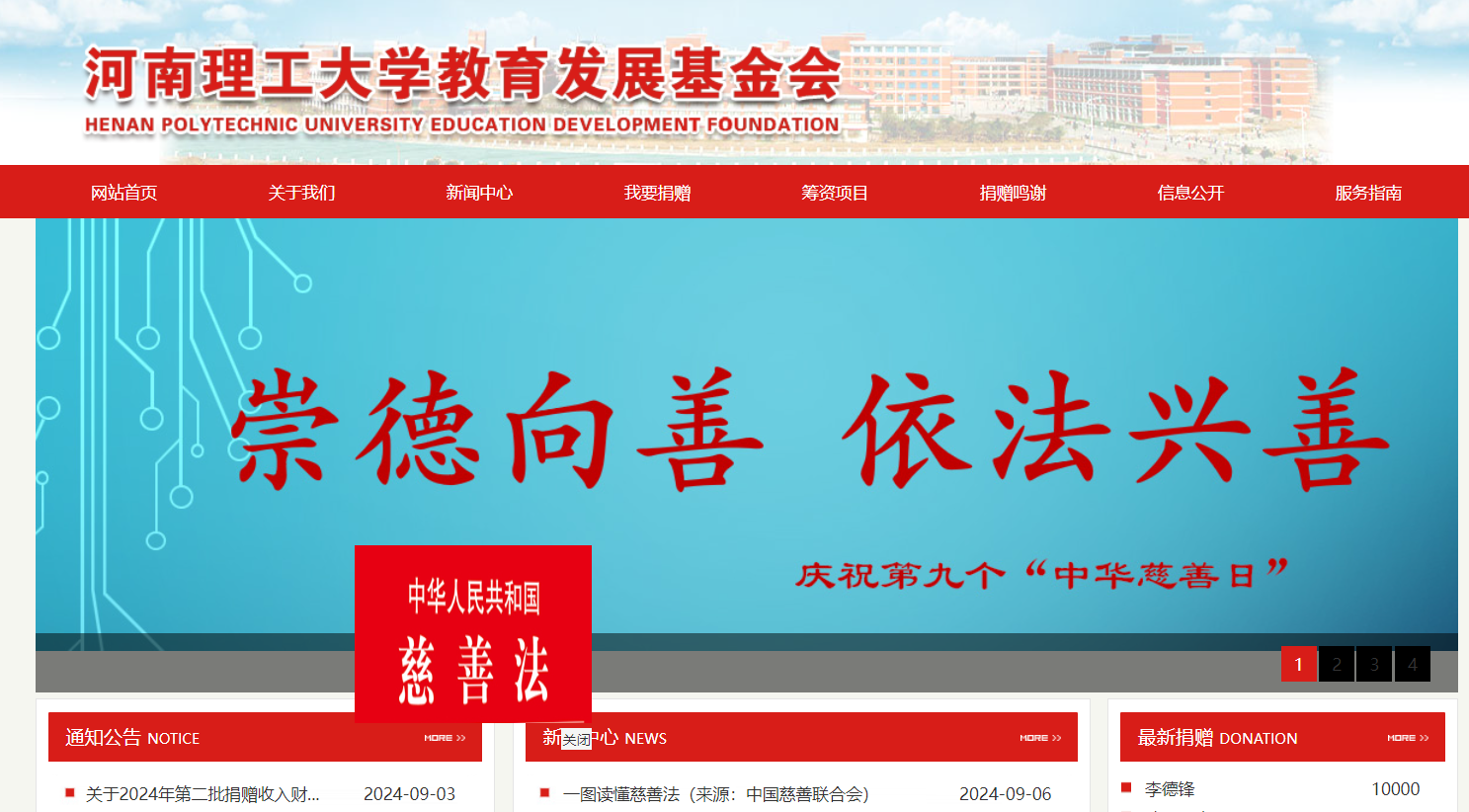 根据高校基金会服务性质、范围和对象的特点,秘书处制定主题宣传活动工作方案。宣传阵地分为线上和线下,线上以基金会网站和微信公众号为主,展示“中华慈善日”主题宣传图片,营造活动氛围,重点发布新修订的慈善法全文及内容解读。线下以校园为主,在学校实验楼、餐厅等多处户外电子屏上滚动播放第九个“中华慈善日”宣传图片。9月5日恰逢学校2024级本科新生入学,基金会在南、北校区迎新现场绿色通道处设立了新生助学助困物资领取点,向各学院推荐的贫困学生发放学习、生活物品,用实际行动做好“中华慈善日”公益助学助困工作。在现场还放置了基金会宣传材料,介绍学校基金会及社会资助类奖助学金情况,鼓励贫困学生刻苦学习,自强自立,努力获得社会类奖助学金。