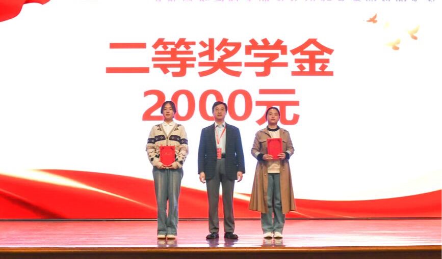 金双根教授为二等奖学金获奖者颁发荣誉证书