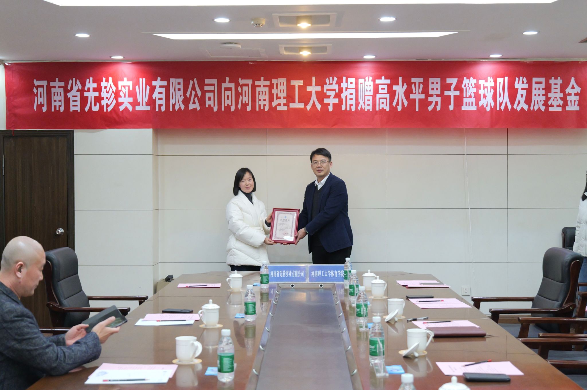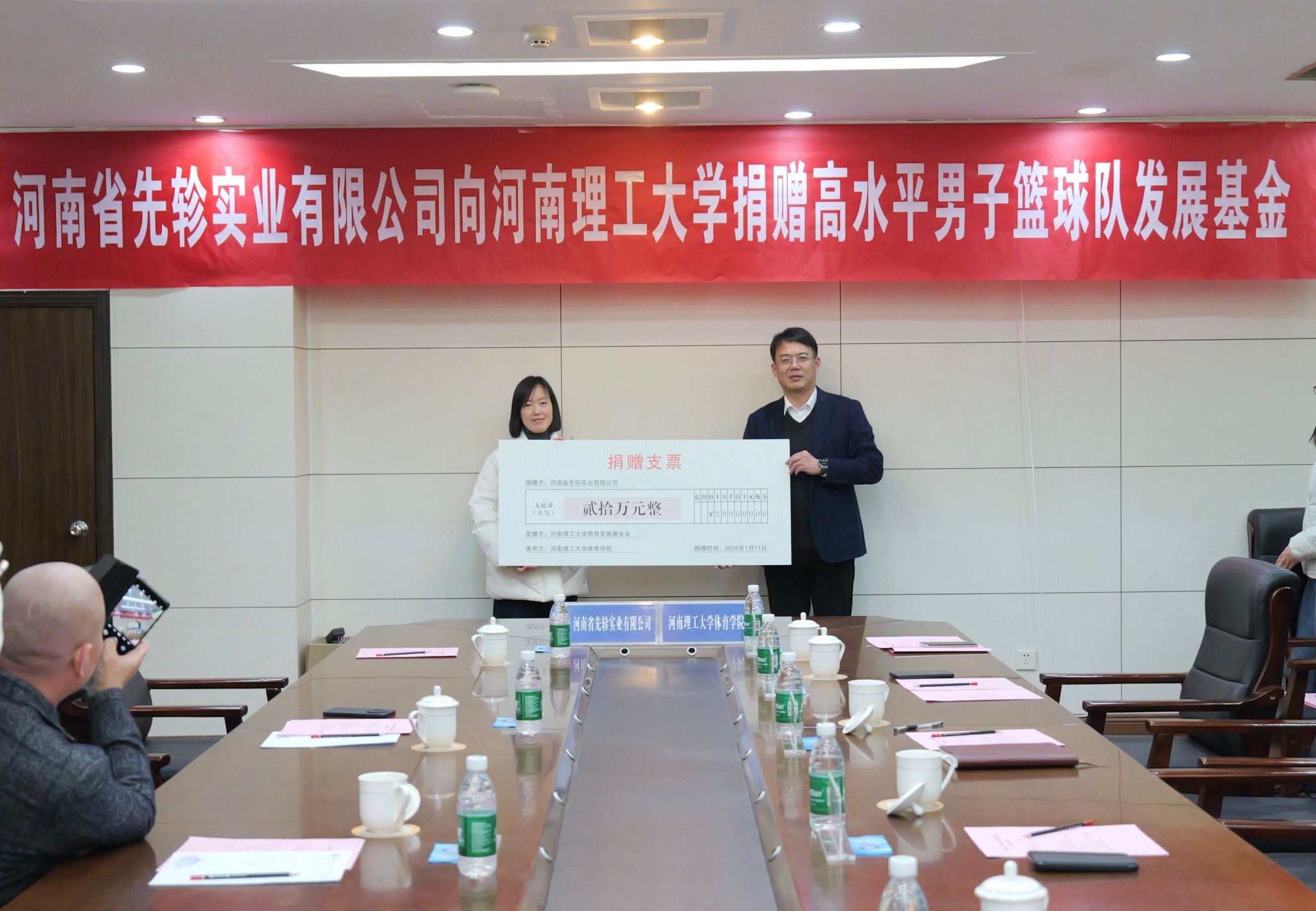 寒冬时节,却亦有暖。1月11日下午,河南省先轸实业有限公司向学校捐赠高水平男子篮球队发展基金,学校在行政楼一楼会议室举行捐赠仪式。副校长李振华、河南省先轸实业有限公司董事长崔明亮出席仪式。仪式由体育学院党委副书记马志洋主持。
