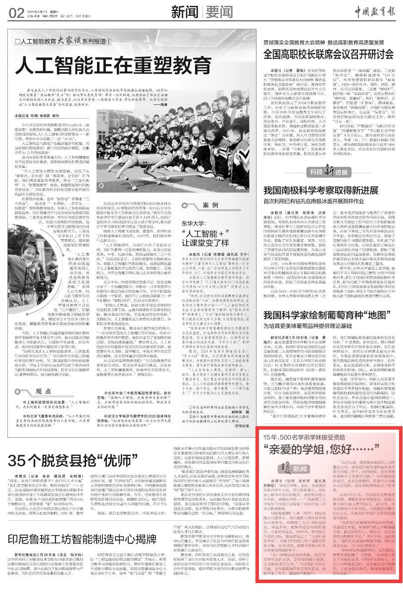 3月1日,《中国教育报》在第二版报道马桂霞校友在母校设立“九鼎科技奖学金”,护航理工学子圆梦的感人事迹。马桂霞是地勘1982级校友、北京校友会会长、德矿九鼎(天津)科技有限公司董事长、北京鑫源九鼎科技有限公司董事长。自2009年以来,马桂霞先后捐资1800000元,助力母校建设,体现了一名企业家高度的社会责任感和对母校的拳拳情谊。报道全文如下。
