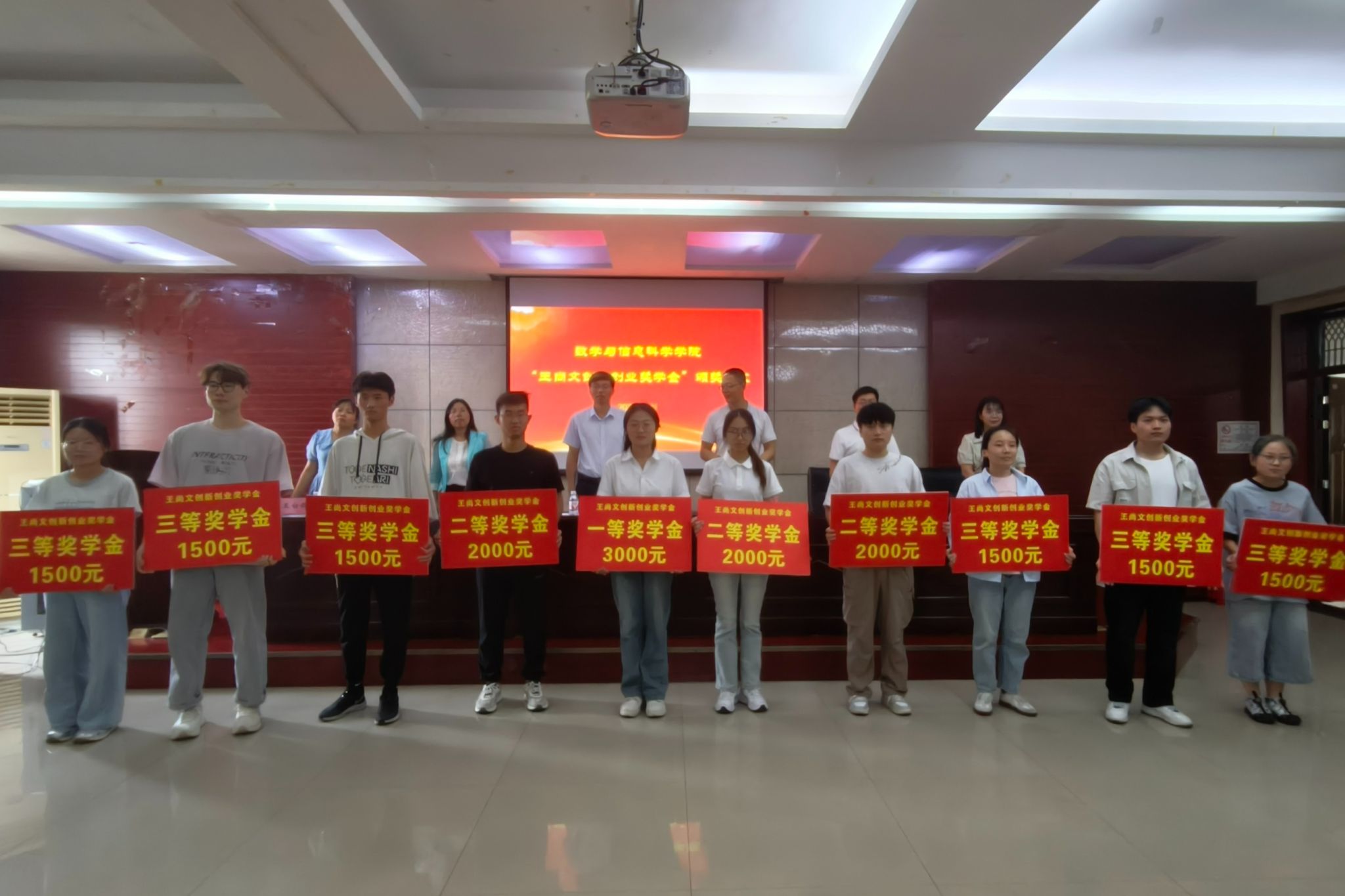 “王尚文创新创业奖学金”由该院2005级信息与计算科学专业毕业生王尚文在学校110周年校庆之际捐资设立。该项奖学金每年评选一次,主要用于激励学生积极参与创新创业实践与竞赛,提高在校学生创新创业素质和能力。