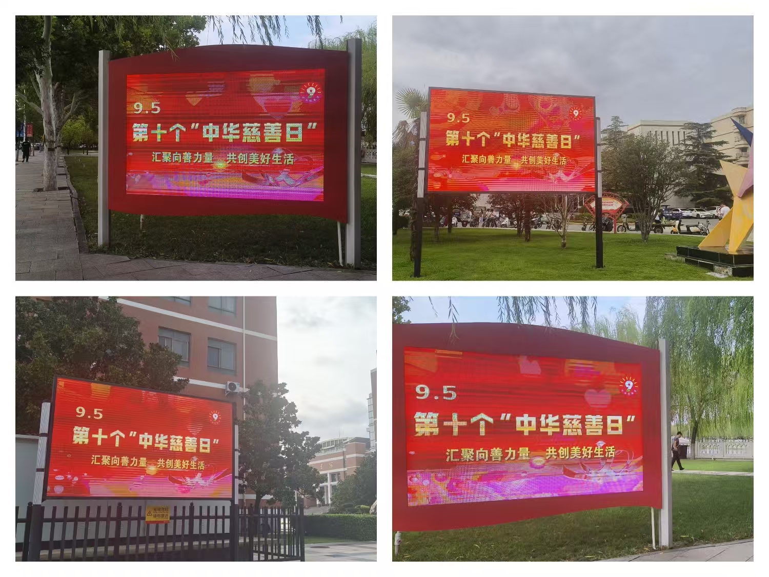 活动主要在校园内开展。一是开展现场宣传活动:在三号教学楼附近开展“中华慈善日”知识宣传,宣传展板介绍学校基金会工作情况、社会资助类学生奖助学金和慈善相关知识,基金会志愿者进行现场宣传和互动活动,向参与者发放文创物品。二是营造慈善文化氛围:在学校南大门入口、实验楼两侧、餐厅门前等多处户外电子屏上滚动播放第十个“中华慈善日”主题宣传图片,让更多的人了解中华慈善日。