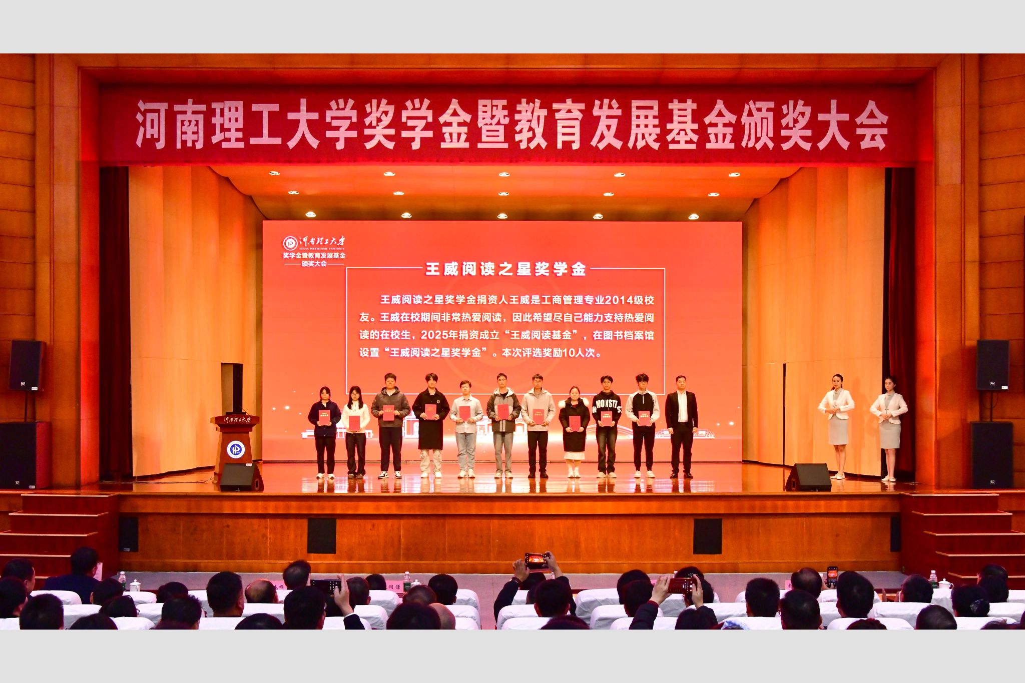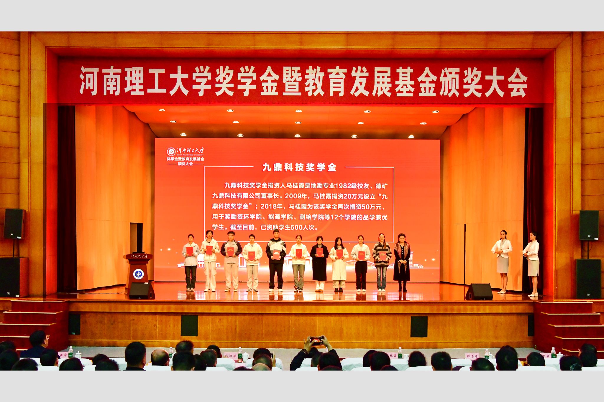 大会介绍了学校奖学金、教育发展基金的设置、构成和资助等情况,对获得“国家奖学金”“国家励志奖学金”“孙越崎奖学金”“朱训教育奖励基金”“傅恒志院士基金”“姚晓峰、余丽奖学金”“九鼎科技奖学金”“柳雪春助学金”“孙成奖学金”“美好前程助学金”“腾飞建工奖助学金”“本勤·助力助学金”“才子基金奖学金”“脉库科技助学金”“王威阅读之星奖学金”等15项奖励的师生进行了表彰。