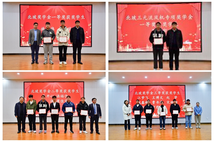 会议伊始,北玻股份公司行政管理中心副主任廖志强讲话,对获奖同学表示祝贺,希望同学们持之以恒坚持学习、不断进步。在之后的颁奖环节,出席仪式的各位领导先后为获得北玻奖学金一二三等奖的同学和获得北玻三元流风机专项奖学金一二三等奖的同学颁奖,并合影留念。获奖学生代表施华伟、李洋分别发表获奖感言,向北玻股份公司及北玻三元流风机公司表达感谢,表示将心怀感恩、不懈努力、不负期望。北玻三元流风机公司总经理李建森讲话,他介绍了北玻企业情况和企业精神,表示愿为同学们提供最好的平台,希望同学们毕业后能够积极加盟北玻。材料学院院长朱建平讲话,对北玻股份公司及北玻三元流风机公司支持材料学院事业发展表示感谢,他希望双方继续加强交流,优势互补、合作共赢,同时勉励同学们不忘初心、砥砺前行,努力成为新时代优秀青年。